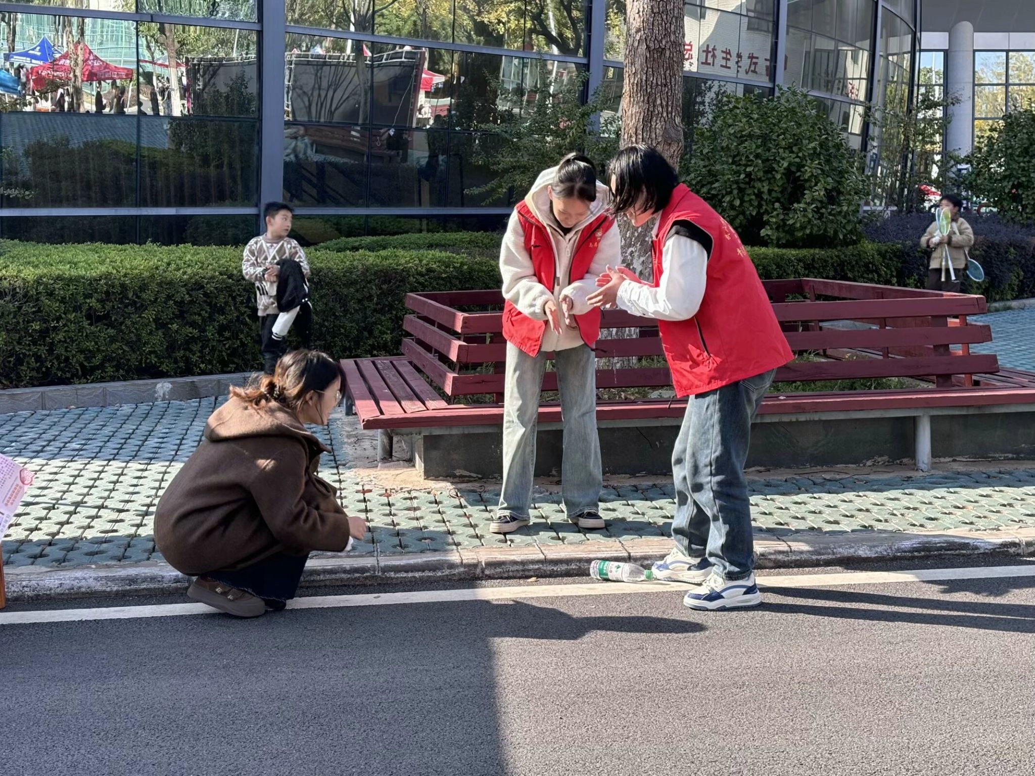 图为志愿者为游戏过关的同学盖章