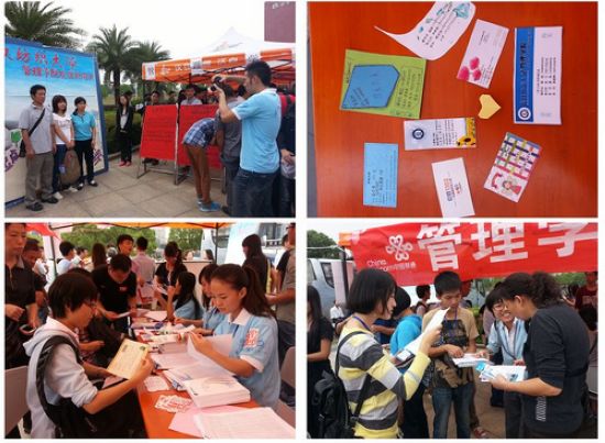 除了常规的报道材料,每个新生还收到了一张小卡片,细心的同学还发现不同班级的学生领到手中的卡片不尽相同:有的是张名片,上面注明了他们的班级、学号、寝室号,还附有辅导员、班主任、党员学长的联系方式;有的是个书签,“读书破万卷,学长更会爱”的调皮话语让人忍俊不禁;还有的已经亮出了班级口号,“让我们携手开始一段葱郁之途!”原来,这是党员学长们为新生特意准备的小礼物,在给他们提供准确、全面的信息的同时,也融入了班级和学院特色。