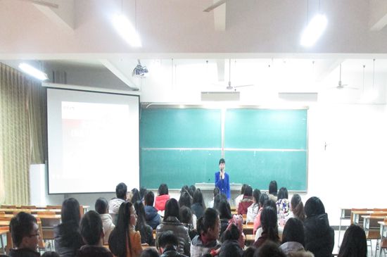 在几位学生代表讲述自己心中的梦想和对梦想的看法后,讲座正式开始。李老师指出梦想都是美好的,而在实习梦想的道路上,修养与素质尤为重要,现场的每一位同学都应该是可以用自身良好的素质来影响他人的人。她从什么是礼仪,为什么要学礼仪,学礼仪的好处三个方面为大家讲明修养与素质对我们当代大学生的重要性,内塑修养,外塑形象。并指出礼仪决定一个人给别人的第一印象,不学礼仪会影响人际交往的能力会影响就业的发展。在讲座过程中,李老师认真的为大家讲明仪容仪表的内容与要求,并多次邀请同学上台为大家展示正确的仪态姿势。同学们积极与老师沟通交流,教室气氛活跃,同学们被李老师的讲座吸引。