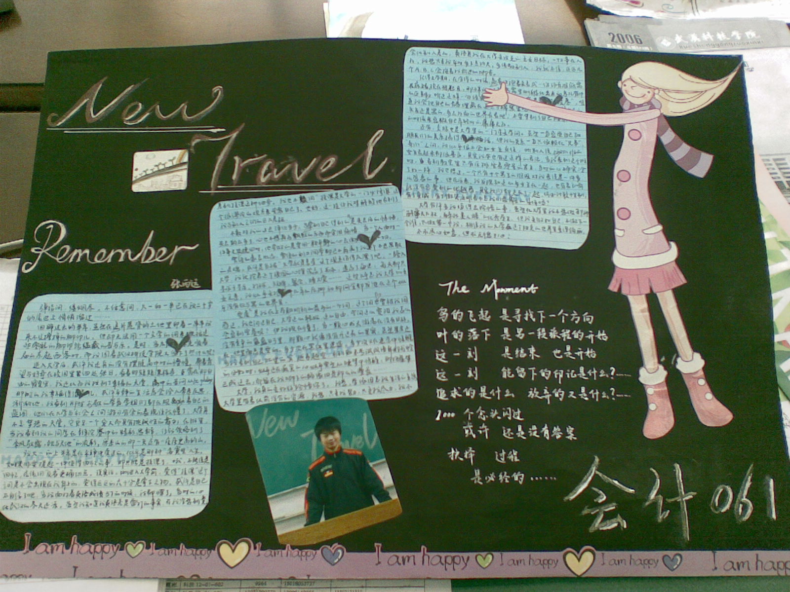 3月26日,我院大一各班以“new travel”为主题的团报在阳光校区食堂侧门口成功展出。此次共收到20余副由班级同学制作精美,内容丰富的作品。