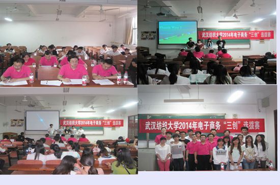 全国大学生电子商务“创新、创意及创业”挑战赛是发展大学生创新意识、创意思维、创业能力以及团队协调实战精神的学科性竞赛,我校学生积极参与,共有11支队伍通过组委会的资格审核。本次比赛分为PPT展示和评委提问两部分。易织独秀团队的易织网以“原创、互助、公益、美丽”为中心点,以特色纺织、原创团购为主体,打造以织会友的平台,队员们用精美的PPT从项目背景、项目特色、市场分析、营销管理、盈利模式等方面向评委老师进行详细介绍。五角星团队的“游你在身边”专业导游电子商务网络让老师们眼前一亮,针对现在社会人们对出游要求越来越高的现象,他们提出利用网络将出游者和专业导游连接,还与评委老师就营销方案等问题进行了深一步探讨。