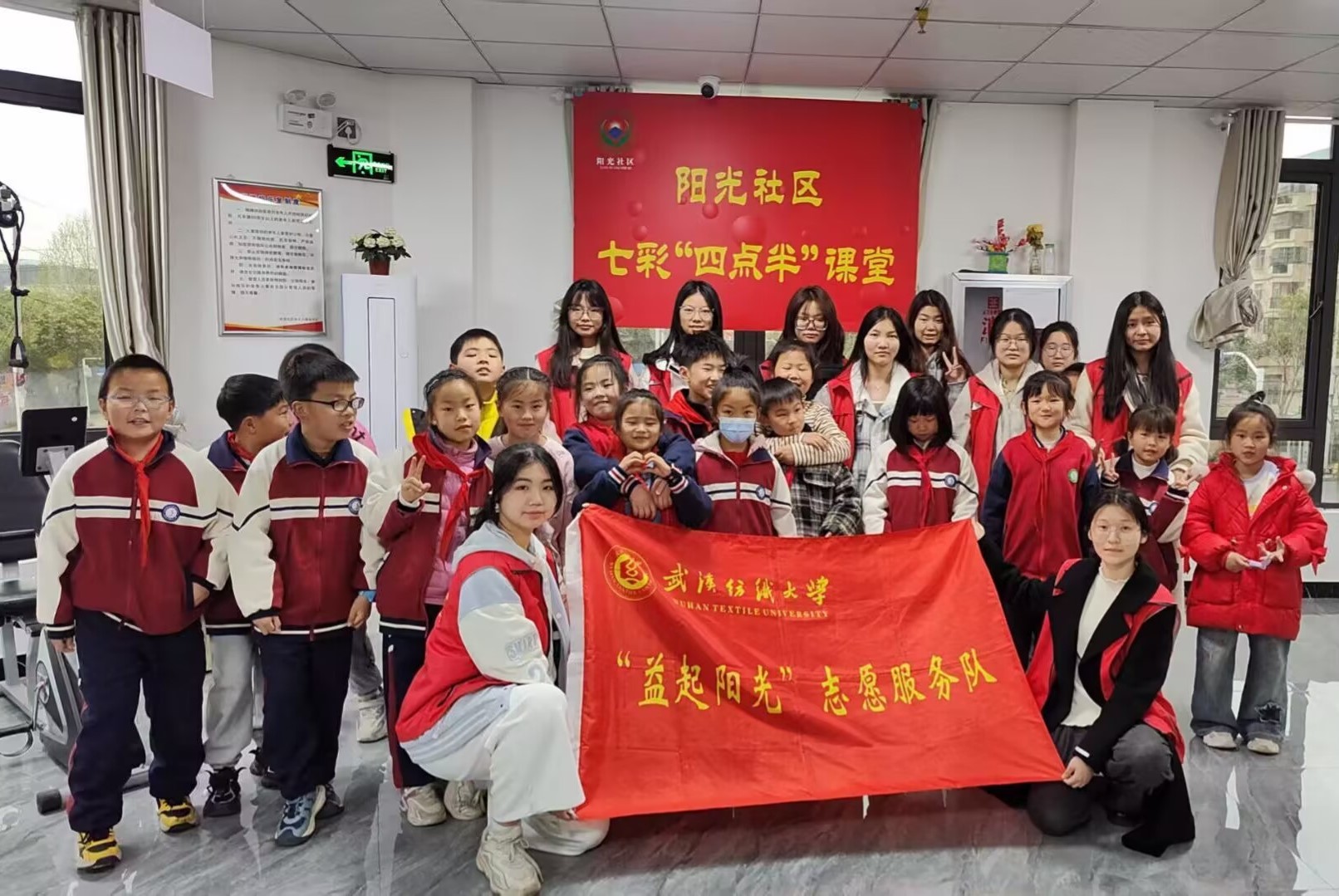 据悉,“益起阳光”志愿服务队以“七彩四点半·阳光领航计划”为载体,在武汉市江夏区青龙山社区和阳光社区常态化开展社区实践志愿服务活动,旨在帮助社区居民解决“辅导作业难”的烦恼,鼓励小朋友们积极思考,提高动手能力,助力少年儿童健康成长。