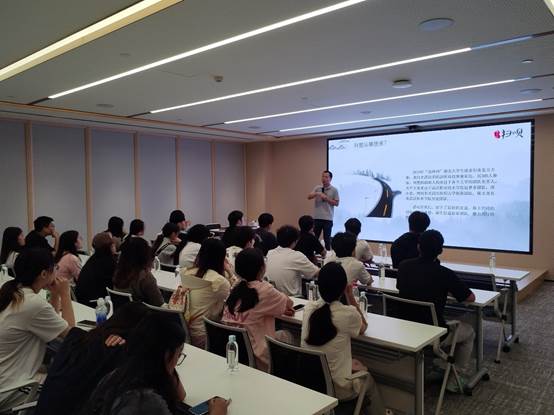 实习过程中,学生们首先参观了公司的大数据显示屏、产品展示区以及公司文化墙等。随后,利楚商务副总裁唐小忠向学生们介绍了公司的行业地位、市场表现以及未来的发展前景,并分享了公司所获得的荣誉和客户案例,让学生们感受到了企业文化的深厚底蕴以及在业界的影响力。