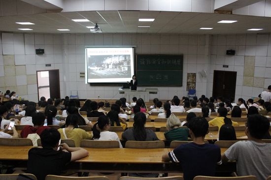 讲座过程中,向老师借助幻灯片和视频,生动形象地为现场同学们展现了几起特大火灾事故,以触目惊心的人员伤亡数据给大家敲响消防安全警钟。接下来,她介绍了灭火器、灭火毯、防毒烟面罩等基础消防工具的正确使用方法。详细讲解了日常生活中如何预防火灾,火灾发生时逃生和自防自救能力等知识,并现场为同学们指出平时容易疏忽的安全隐患。特别提醒大家,以后出门旅游住酒店时,要注意酒店消防通道的位置和是否配齐了基础的消防工具。最后,她发放了培训意见反馈卡,并强调一定要在正规合法商店购买消防器材。