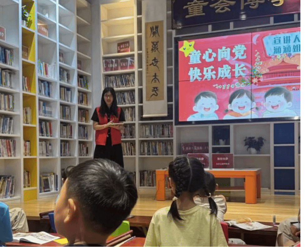 实践队队员 张诗雨: “当给孩子们讲述‘两弹一星’元勋和“月面国旗”研发的故事,看到他们眼中闪烁的敬佩与向往的光时,我内心深受触动。那一刻,我深刻感受到传承的力量。我们不仅是知识的传播者,更是梦想的播种者。能用青春陪伴童心,何其有幸!”
