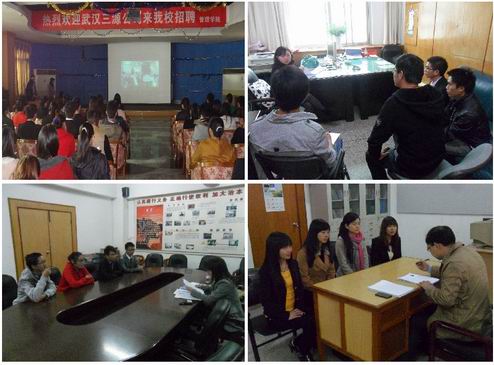 招聘会分两个环节进行,首先是宣讲环节,武汉三源公司人事部刘经理通过宣传片放映,向同学们简要介绍了公司经营概况、职业发展方向及人员需求变动,并通过互动方式对同学们比较关心的工薪和就业地点进行现场答疑。接下来的面试,采取一对四的形式进行。针对面试官提出的各式问题,应聘者个个都自信洋溢,从容淡定。他们优异的表现,获得了招聘方的充分肯定与赞扬。据人事部负责人介绍,在持续近四个小时的招聘会上,他们对不少学生都有一定的接纳意向,将于下周的复试环节正式抛出橄榄枝。