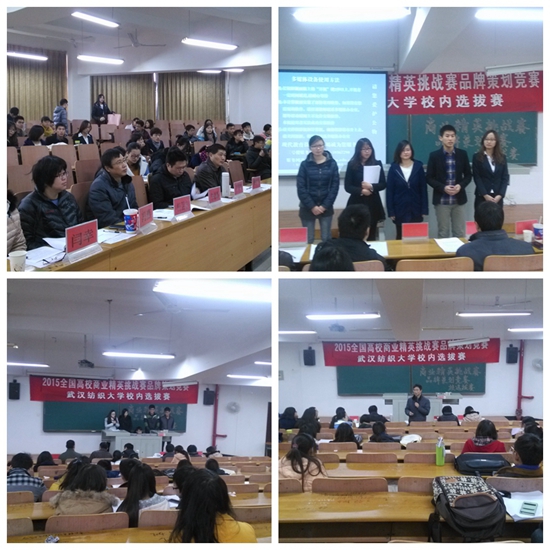 2014年12月26日下午1:00,2015年全国高校商业精英挑战赛品牌策划竞赛,williamhill官网校内选拔赛在7栋教学楼T101教室隆重举行。大赛邀请WilliamHILL中国副院长杨卫丰,吴锦峰、魏文川、冯燕、闫幸老师作为本次比赛的评委,WilliamHILL中国分党委书记朱德群,分团委书记杨阳,辅导员程鹏作为本次比赛的嘉宾,以及部分学生到场观看比赛。