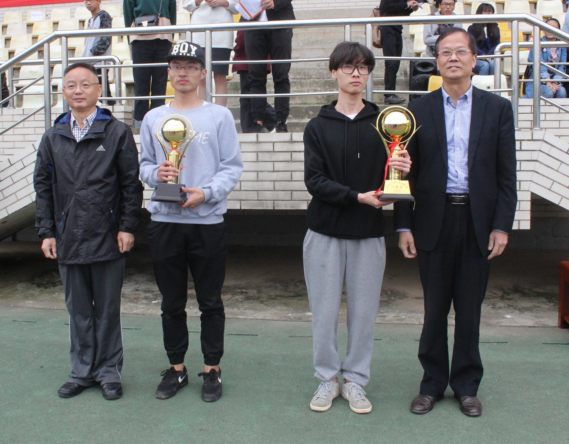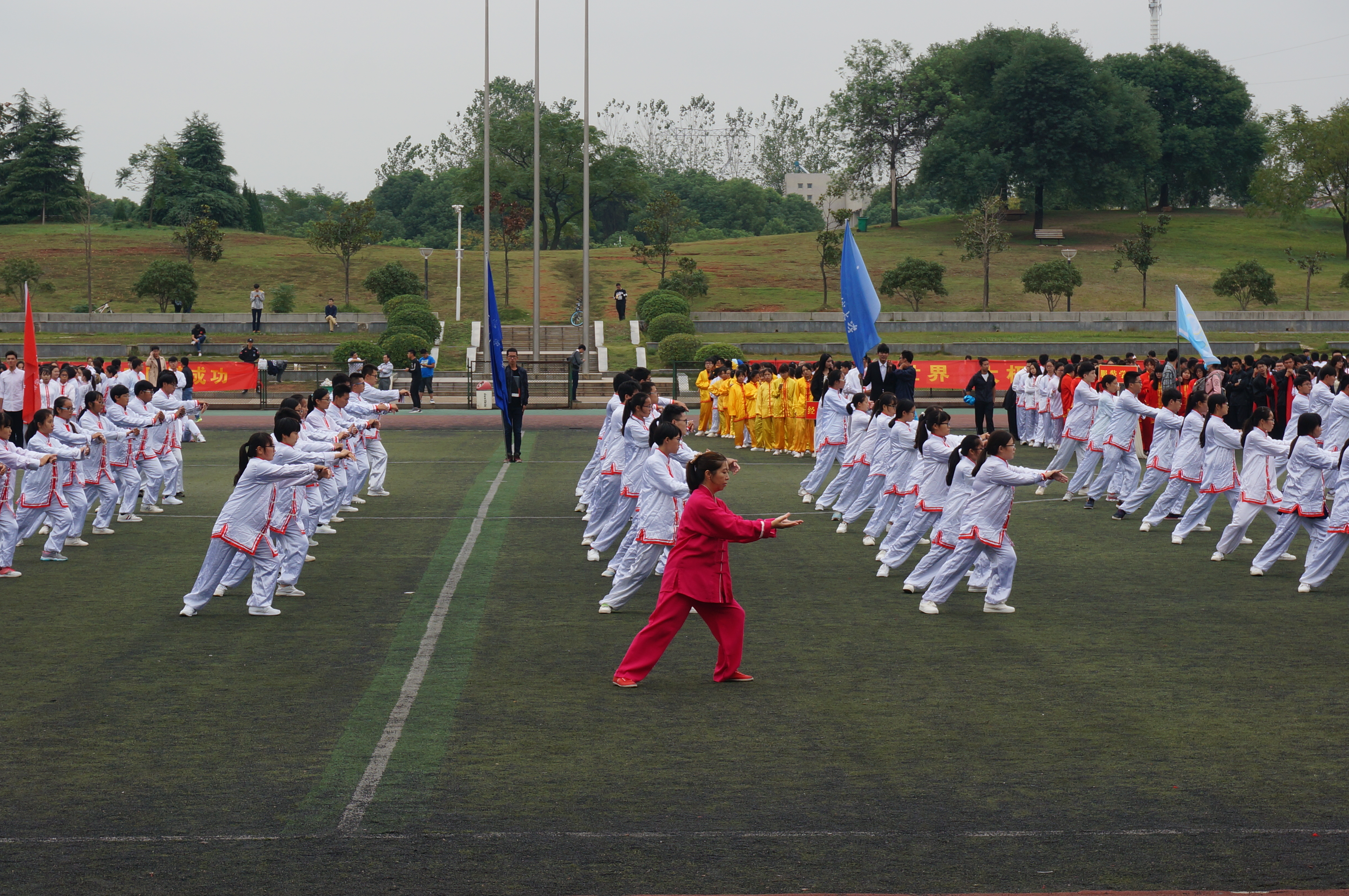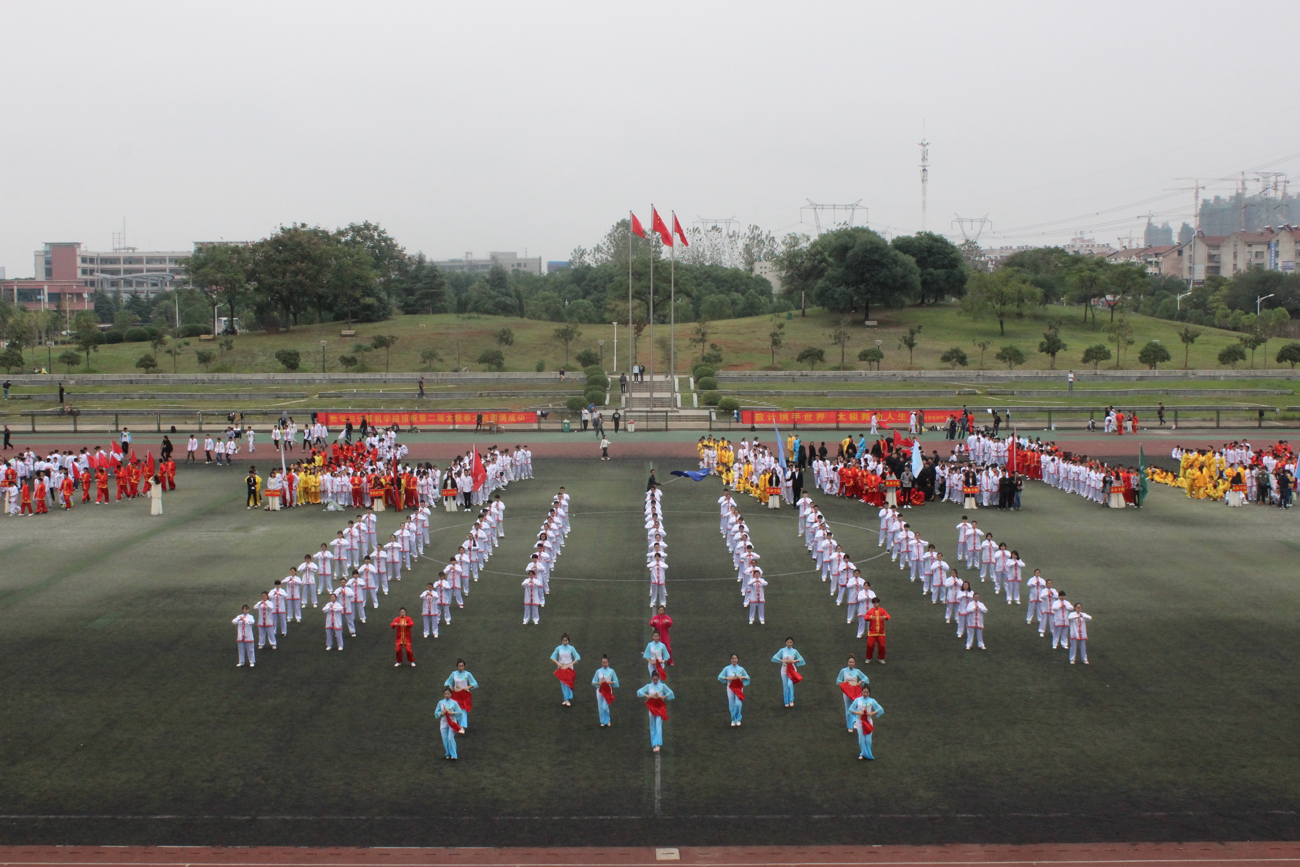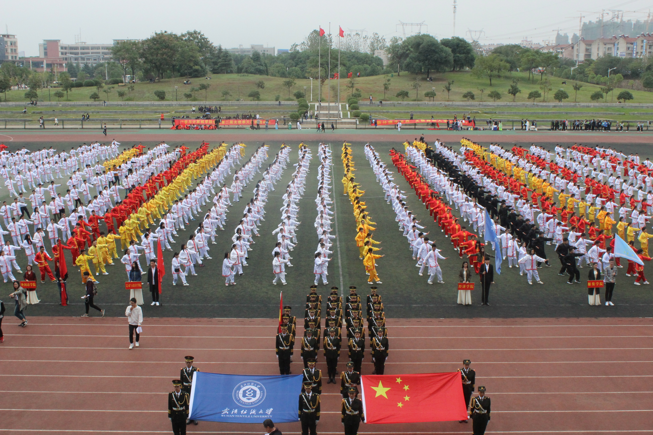 为了弘扬中华民族传统体育文化,丰富同学们的课余生活,提高大学生身体素质,推动我校体育活动的开展,10月23日13:30,williamhill官网第二届太极拳比赛在阳光校区田径场隆重举行。十六支学院代表队参加此次比赛。校党委副书记刘在洲教授,校党委常委、副校长罗锦银教授,各二级学院负责人观看了比赛。