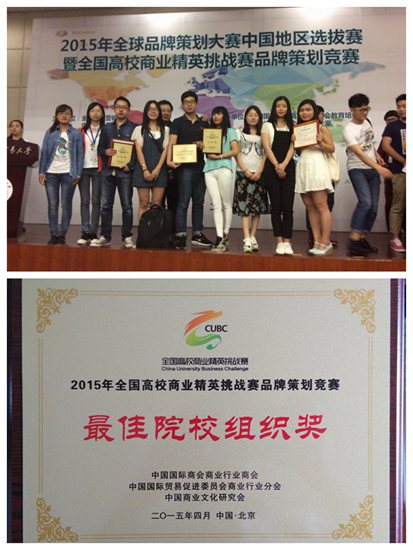 2015年全球品牌策划大赛中国地区选拔赛暨全国高校商业精英挑战赛品牌策划竞赛于日前在北京圆满落幕。我校WilliamHILL中国夏火松、司辉、杨卫丰、冯燕老师指导的三支代表队全部获奖。
