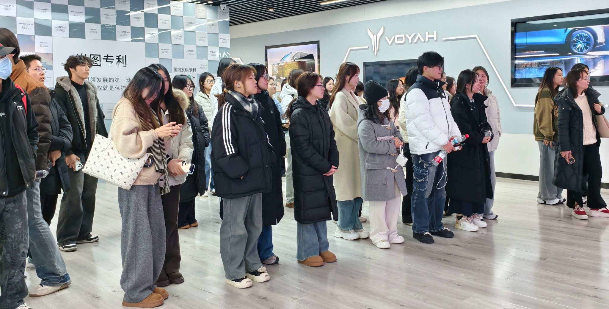 宣讲结束后,在企业工作人员的带领下,有序参观了混动车型组装生产线、螺丝装配专业机器人、S型智能流水线与最终装配线,各道生产工序旁的数字可视化屏幕,实时呈现生产进程,让智能化制造流程一目了然,并且全面了解了岚图旗下五款主力车型、核心技术专利及生产车间的整体概况;在总技术展厅,师生们不仅深入了解了岚图琥珀电池的技术优势与汽车设计的匠心细节,部分学生还走进新型样车亲身体验驾驶,直观感受岚图强劲的技术竞争力。
