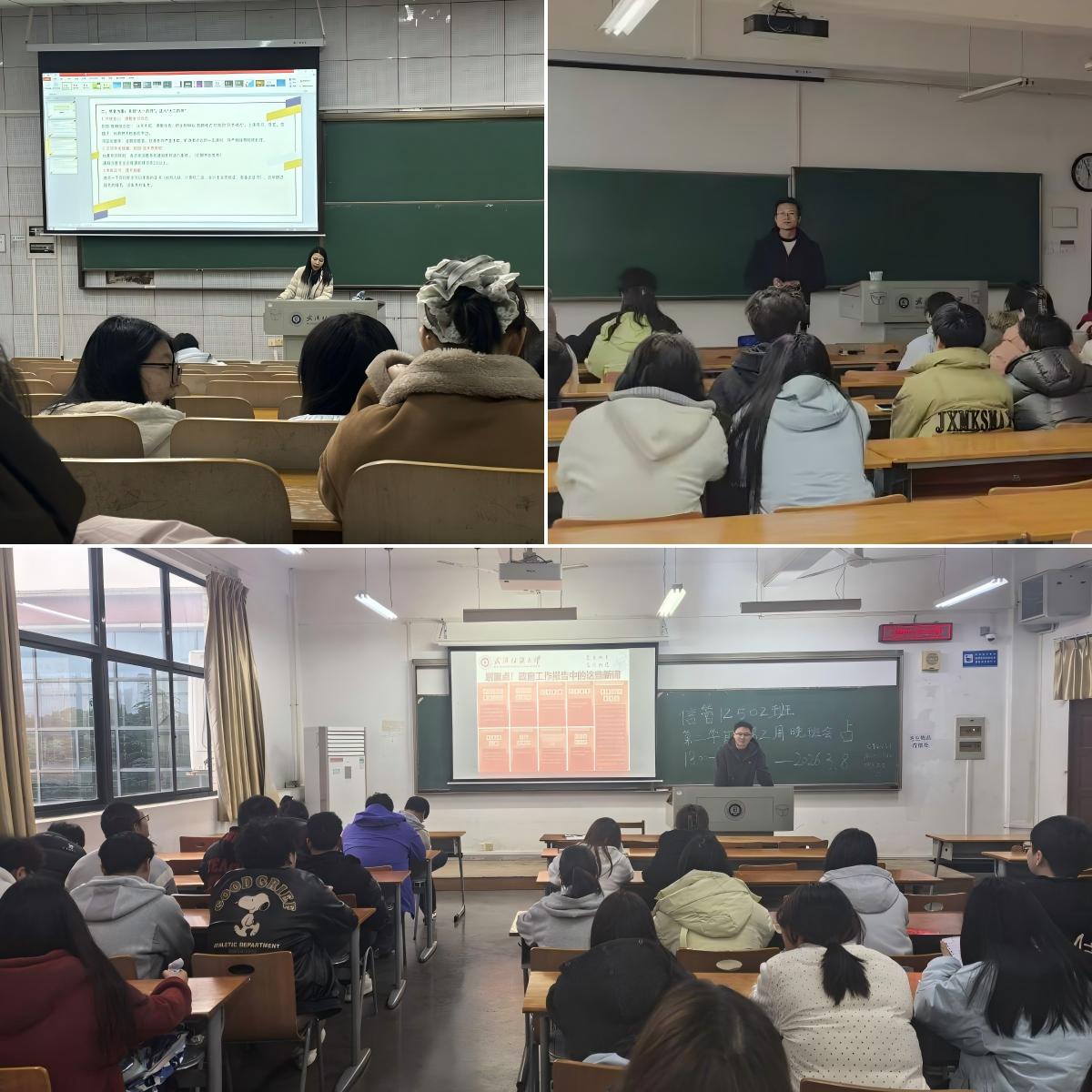 老师介绍了全国人民代表大会与中国人民政治协商会议的职能定位、会议议程与民主内涵,重点解读了2026年政府工作报告的核心内容,从五大“关键词”看2026年全国两会热点。详细阐释了“十五五”开局之年的国家发展重点方向,聚焦报告中的“青年元素”,围绕高校毕业生就业支持政策、青年人才引育、学科专业动态调整、创新创业扶持等内容展开深度解读,引导学生读懂两会传递的国家发展信号,将个人理想融入国家发展大局。