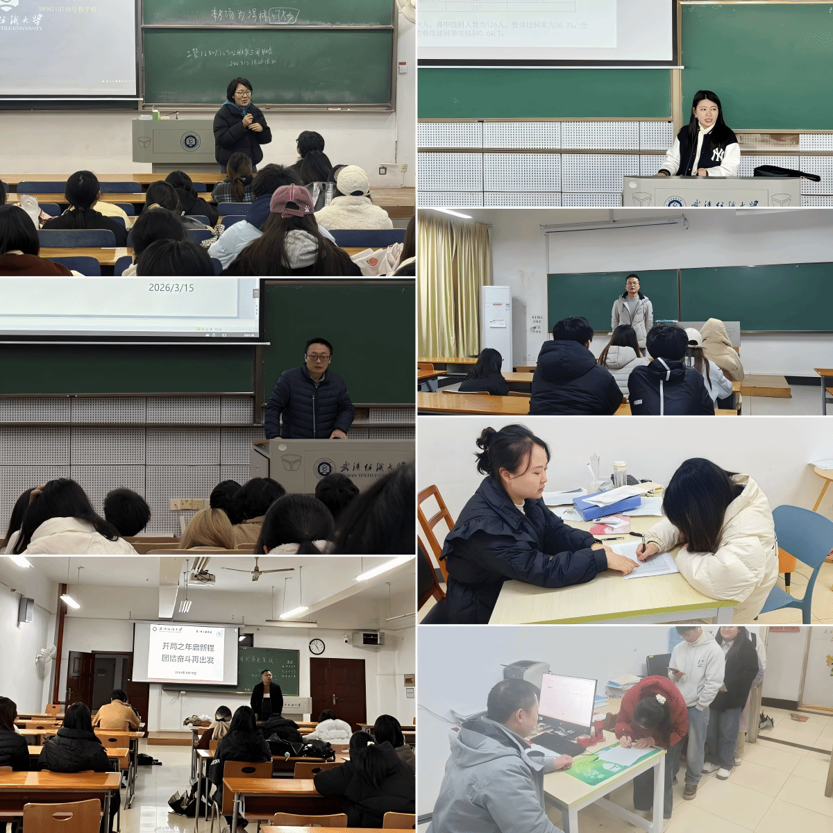 老师围绕全国两会核心内容,介绍了国家未来五年的发展蓝图与核心部署。班会向同学们阐释了国家在科技创新、绿色低碳、民生保障、粮食能源安全等领域的战略布局,让同学们清晰认识到国家发展的宏伟目标与民生导向。班会对照全国两会部署与武汉市政府工作报告重点工作,讲解了武汉在经济增长、科技创新、未来产业布局、城市更新、长江经济带发展等领域的具体举措,让同学们了解到武汉发展为青年学子带来的成长机遇与就业空间。班会上,师生们共同学习了两会上的“纺大声音”,深入了解了全国人大代表、学校党委书记徐卫林院士的履职建言内容。通过学习徐卫林院士“没有落后的产业,只有落后的技术”的深刻论述,以及玄武岩纤维从航天军工应用到民生领域转化的创新实践,同学们深刻认识到传统产业转型升级的巨大潜力,也对学校在服务国家战略、推动产业创新中的责任与担当有了更强烈的认同感。