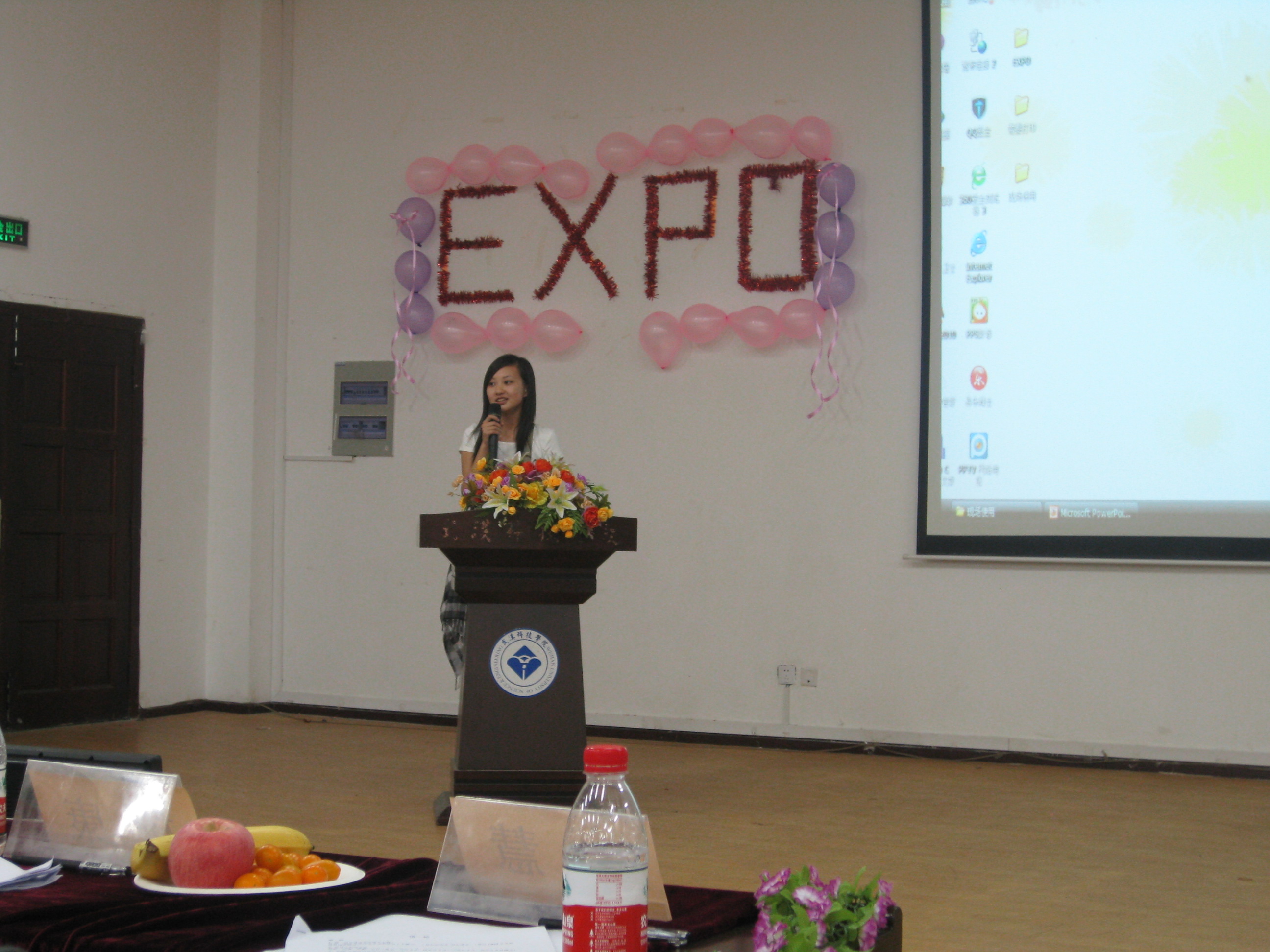 首先,谢老师以“梦想”、“青春”、“友谊”表达了对本次世博会知识竞赛的感受和高校文化交流的想法。本次比赛 经过层层选拔,共有六支班级代表队进入了决赛,决赛形式和内容都进行了创新,每支班级参赛队伍是由三人组成的团队,决赛环节分为“学海觅沙”知识问答、“管中窥豹”看图说话、“口才争锋”组合演讲等三个环节,考察了知识积累、表达应用及团队合作能力等。