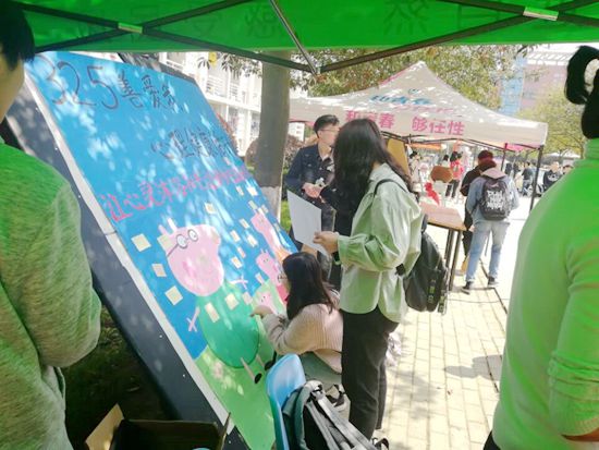 学院领导蒋卫城副书记带领学工教师前往指导,并给予了充分肯定。摆点活动吸引众多学生的关注,特别是午休和课间,更是迎来人群高峰期,同学们参与度极高,纷纷写下自己最幸福的时刻。据统计,有500左右的学生参加,充分说明“善爱我”活动意义重大。