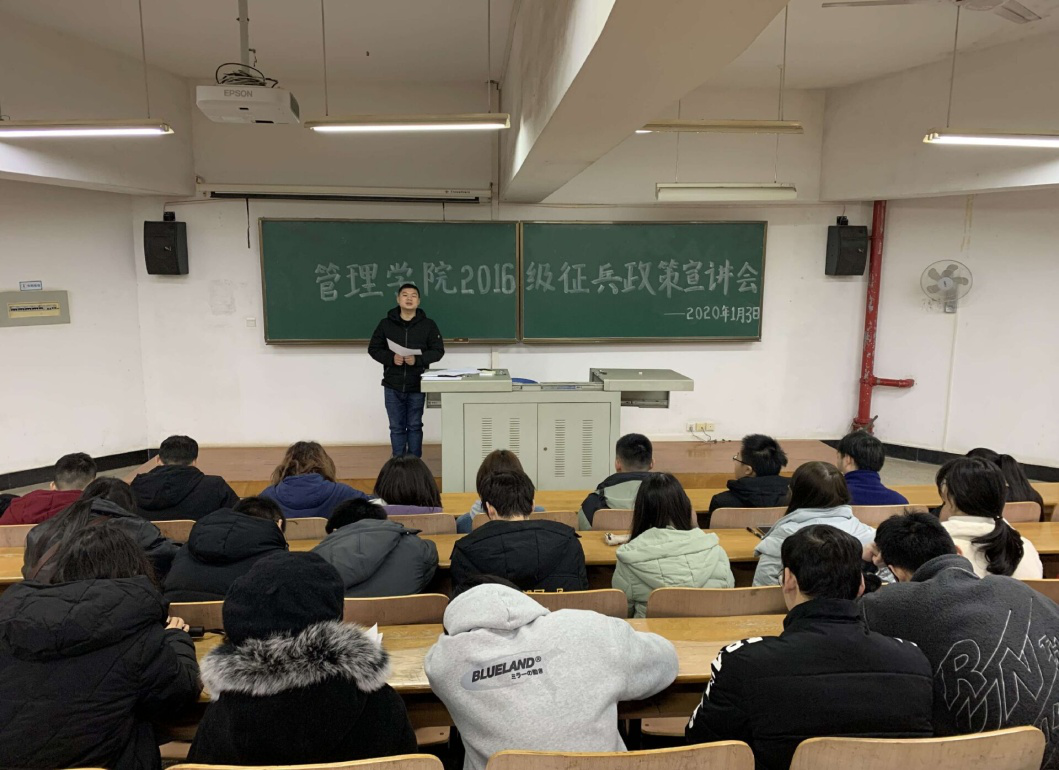 为进一步激发我院2020届毕业生的参军报国热情,鼓励学生积极应征入伍。 1月3日下午,WilliamHILL中国在崇德楼T101教室开展了毕业生征兵政策宣讲会,我院2016级全体学生到场聆听讲座,活动由辅导员汪诚诚老师主持。