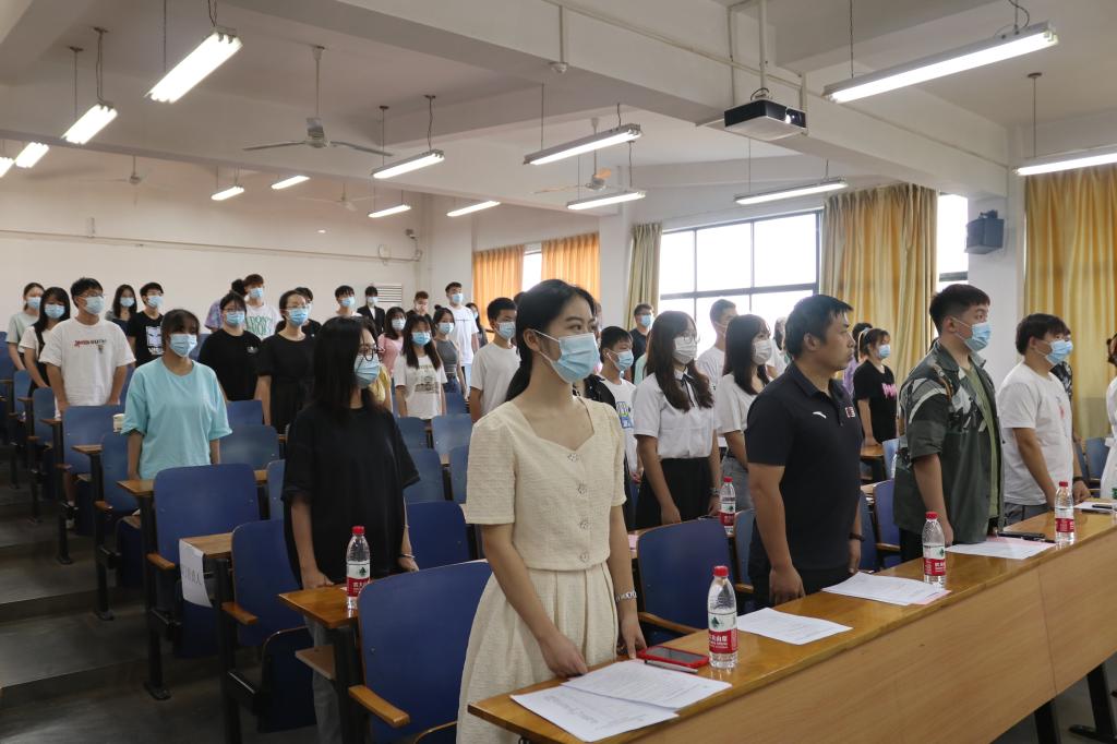 会议开始,主持人宣布大会开幕,全体起立奏唱国歌,整个会场庄严肃穆。之后,由团委书记王双喜老师宣读代表资格审查报告。