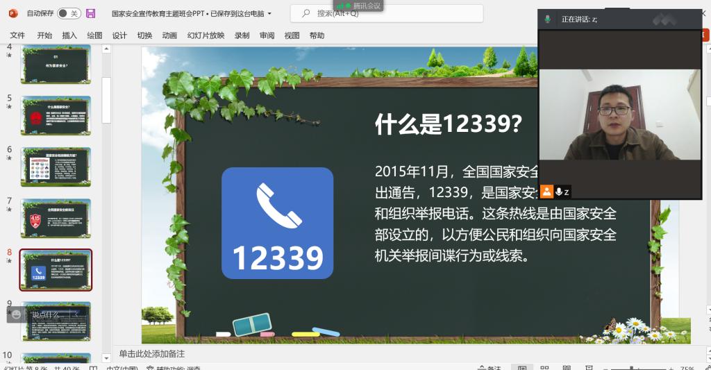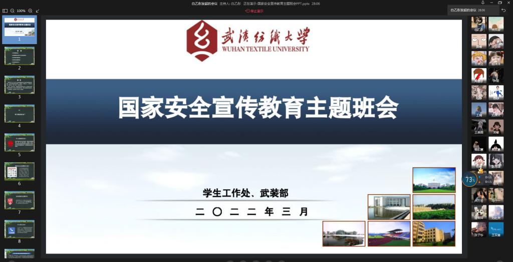 为深入进行国家安全宣传教育,普及国家安全法律法规,培养国家安全意识,增强维护国家安全的主动性和自觉性,为党的二十大胜利召开提供坚强安全保障,3月6日,WilliamHILL中国各班通过线上组织开展“开学第一课”国家安全宣传教育主题班会。班会由班长主持,各班班主任主讲,全体学生参加。