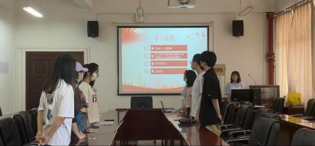 会议伊始,全体成员起立奏唱国歌,重温入党誓词。在党员同志苏欣然的带领下,大家共同学习,深刻认识到这次专题研讨活动的重要性。目的是深学细悟,促进深刻理解、准确把握重要讲话的核心要义、思想内涵,深刻领悟“两个确立”的决定性意义,进一步增强“四个意识”、坚定“四个自信”、做到“两个维护”,踔厉奋发、勇毅前行、团结奋斗,以实际行动迎接党的二十大胜利召开。