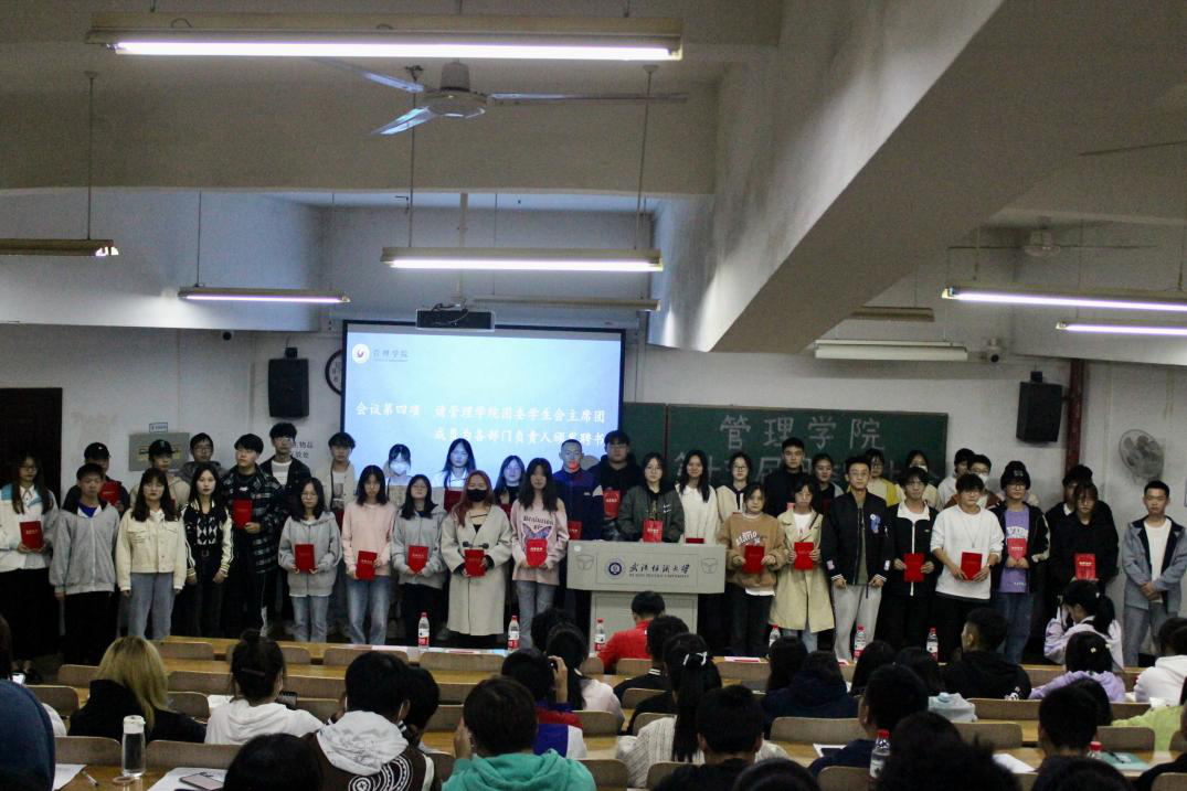 WilliamHILL中国团委书记王双喜与主席团成员分别为主席团和各部门负责人颁发学生干部聘书,同时各部门负责人依次上台介绍各部门情况,并对部门新成员提出未来工作展望。