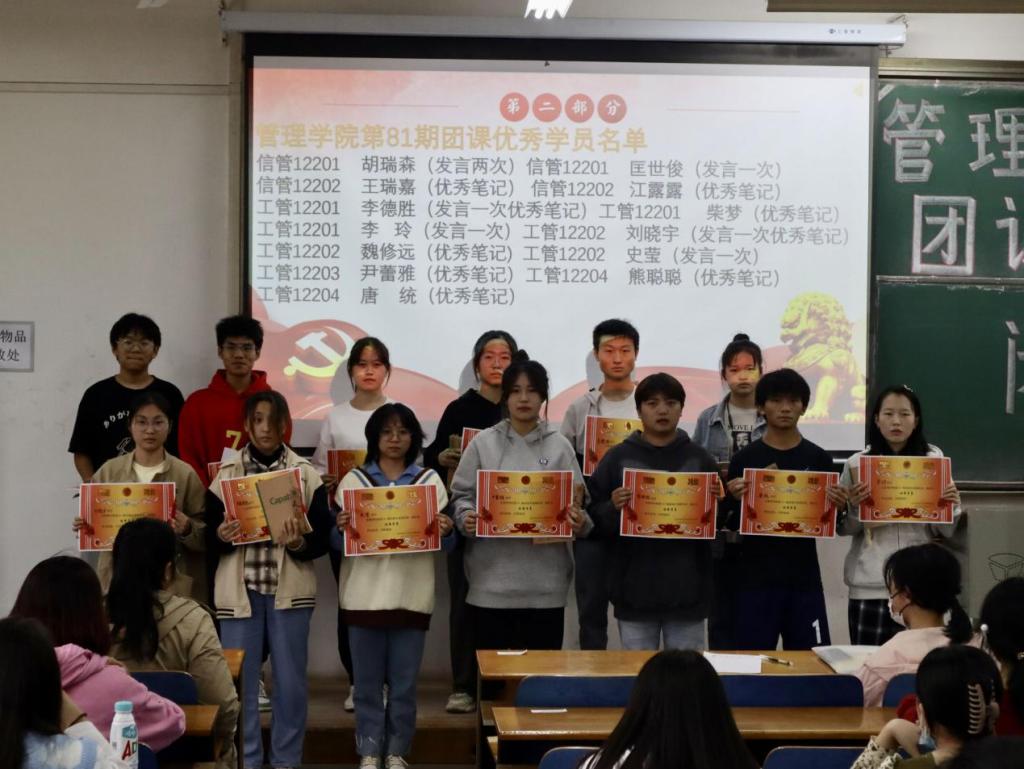 结业仪式上,组织部负责人为在本期团课中认真听讲、积极思考、认真做好团课笔记的优秀学员进行了表彰。