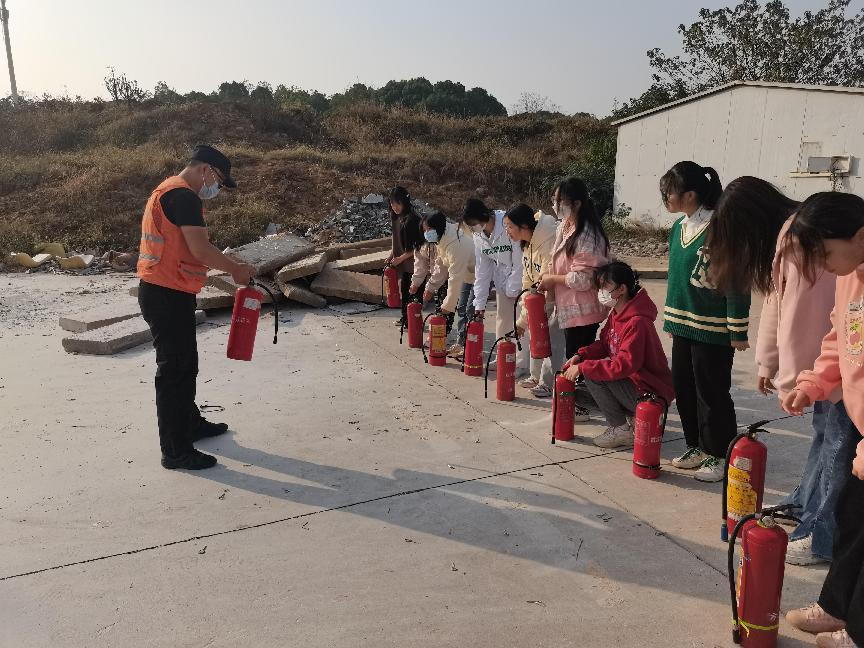演练场上,保卫处工作人员提前准备好300多罐干粉灭火器和燃烧火盆,按照学生10人一组,为学生详细讲解了防火安全常识、火灾的严重危害以及如何扑救初起火灾等消防知识。