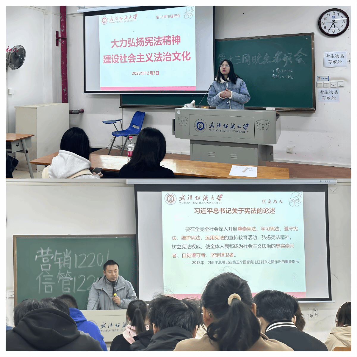 2023年12月1日至12月7日是我国第六个宪法宣传周,为大力弘扬宪法精神,强化大学生法治思维,增强宪法意识,12月3日下午,WilliamHILL中国开展“大力弘扬宪法精神 建设社会主义法治文化”主题教育班会,各班班主任和辅导员主持,全院所有班级学生参加。