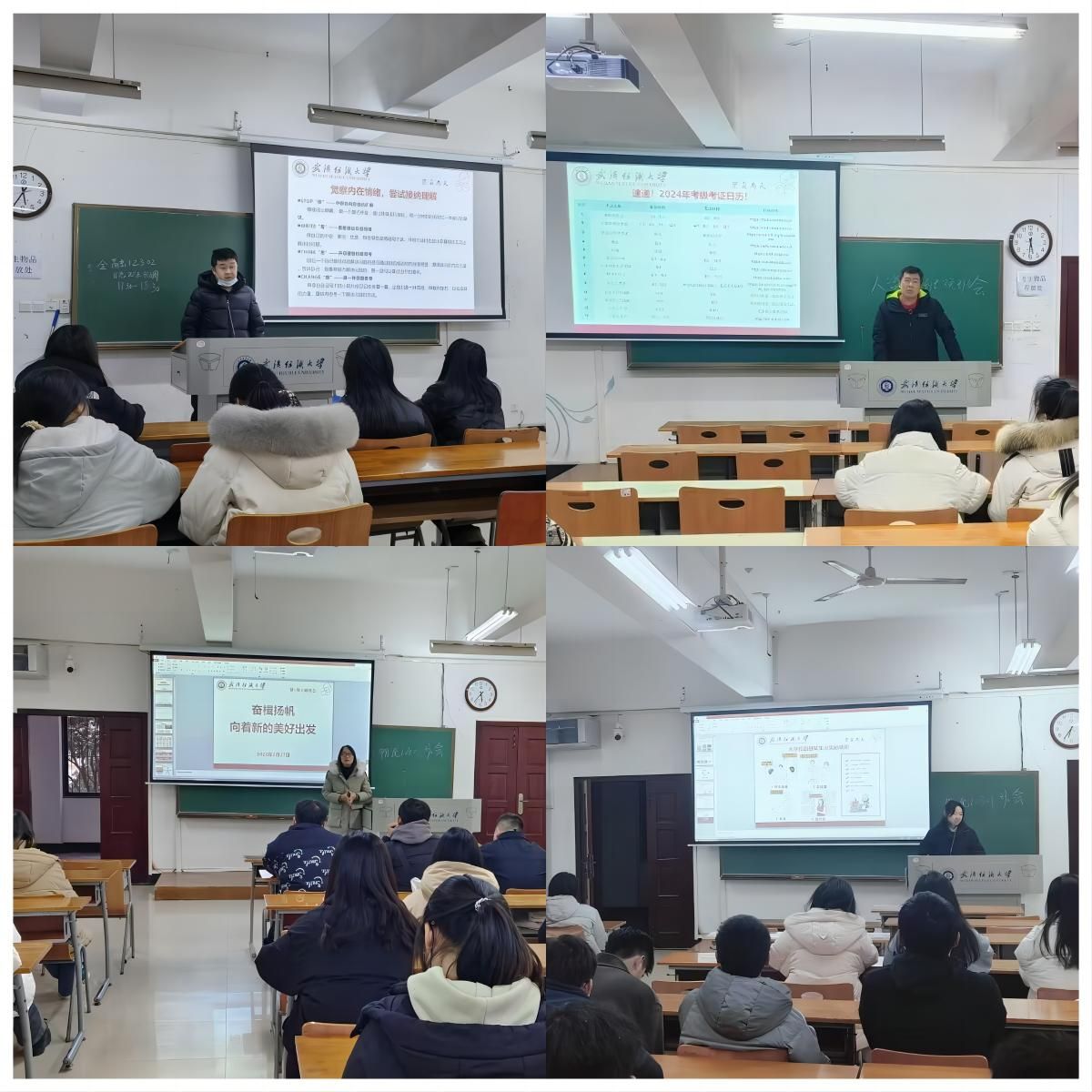班会学习了2023年我国经济取得的巨大成绩,回顾了我校去年在学术实力、培养质量、育人环境、办学声誉等方面取得的进步,介绍了2024年我国即将迎来的喜事和大事,分析了大学生各大学科竞赛的时间,勉励同学们在新学期树立新目标,珍惜美好时光,在奋斗中不断丰富青春的色彩。班会上同学们互相分享了自己在寒假中的见闻和收获,让同学们感受到了班集体的温暖。最后老师针对用电安全、饮食安全、财产安全、防范电信诈骗进行了重点强调,提升同学们的防范意识。
