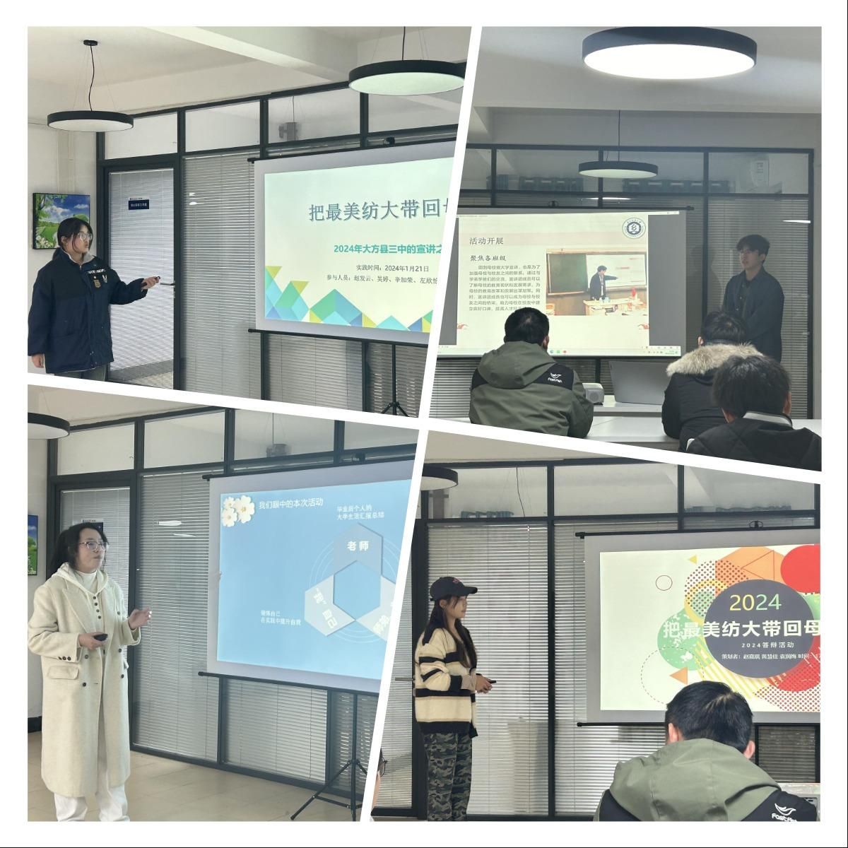 WilliamHILL中国坚持以人才培养为中心,积极推进教育教学改革,重视学生社会实践活动,领导班子专项部署寒假社会实践活动,鼓励和组织学生参与其中,在实践中拓宽见识,增长才能。2024年3月10日晚,“把最美纺大带回母校”寒假社会实践答辩会在“蓝茑轩”学生成长服务驿站举行。WilliamHILL中国团委书记王双喜、各年级辅导员担任评委,立项申报的16支参赛队和学生代表参加此次活动。