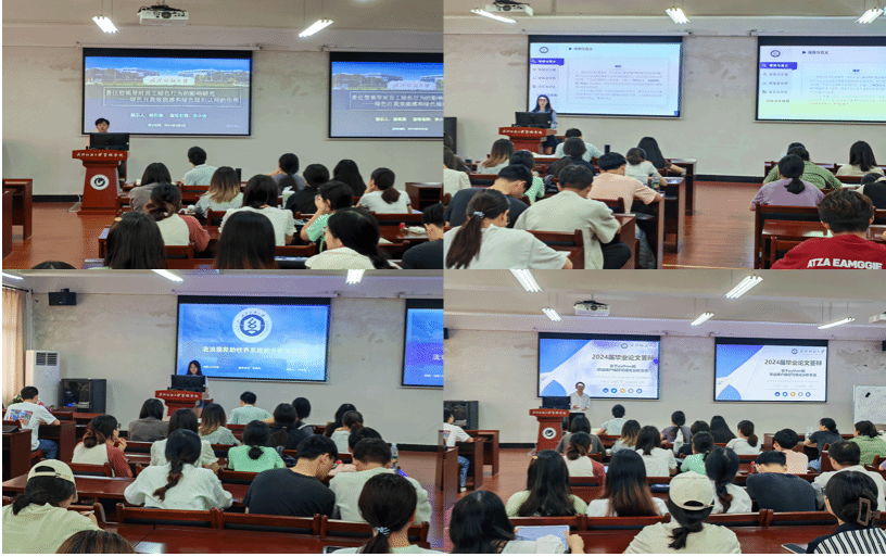 信息管理与信息系统专业安旭广详细介绍了自己基于Python的B站用户偏好可视化分析系统的设计与实现,展示了系统的核心技术,分享了项目实现过程中的挑战与收获;人力资源管理专业杨有澌就“责任型领导对员工绿色行为的影响研究”进行分享,探讨了责任型领导对团队绿色行为的影响及其作用机制;市场营销专业伍沁梅针对“人脸识别不同面部呈现方式对顾客满意度的影响研究”进行了交流,讲述了人脸识别技术的应用对于提升顾客满意度具有重要意义;电子商务专业李雪莹就“流浪猫救助收养系统分析与设计”进行了阐述,详细介绍了该系统的功能结构、数据库设计以及系统实现的关键技术,展示了电子商务专业在解决实际问题中的独特视角和创新能力;市场营销专业何嘉雯同学就“平台企业社会责任异化对顾客的影响”进行了分享,她讲到在当前经济社会背景下,企业社会责任已成为社会各界广泛关注的热点话题。分享结束后,在场同学就毕业论文的选题方向、论文结构等问题与分享人进行了热烈的探讨与交流。