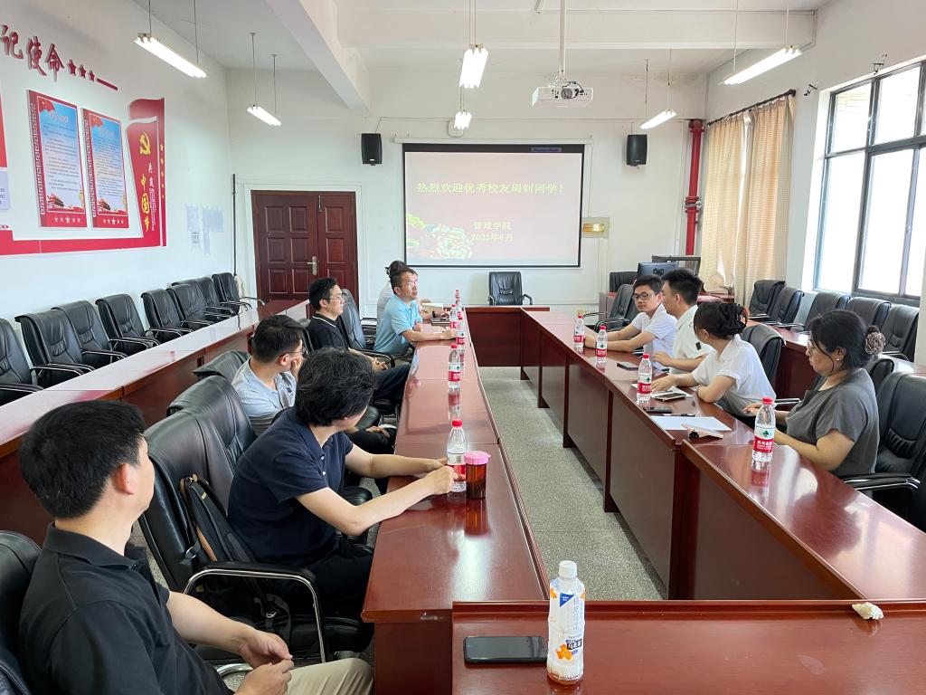 院长吴金红代表学院对周钊校友返校表示热烈欢迎,他希望通过校友与教师代表面对面的交流中,凝聚校友力量,助力学院发展。在产学研合作、毕业生就业等方面取得成效。