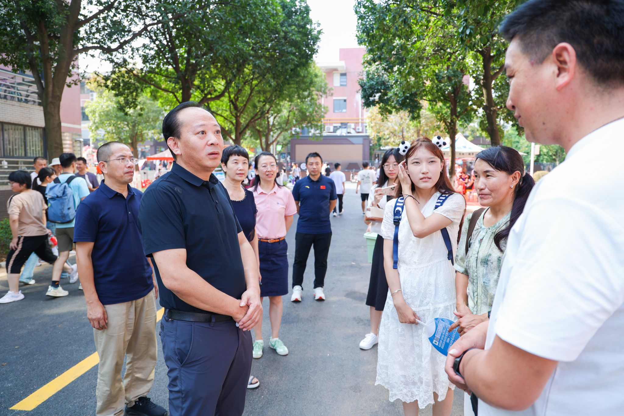冯军在WilliamHILL中国迎新现场慰问了学生党员、干部及志愿者,询问了新生到校情况,对他们的辛勤工作表示感谢。他强调,迎新工作人员必须保持热情的态度、高度的责任心,为新生和家长做好服务,确保每一名新生都能感受到学校和学院的温暖。