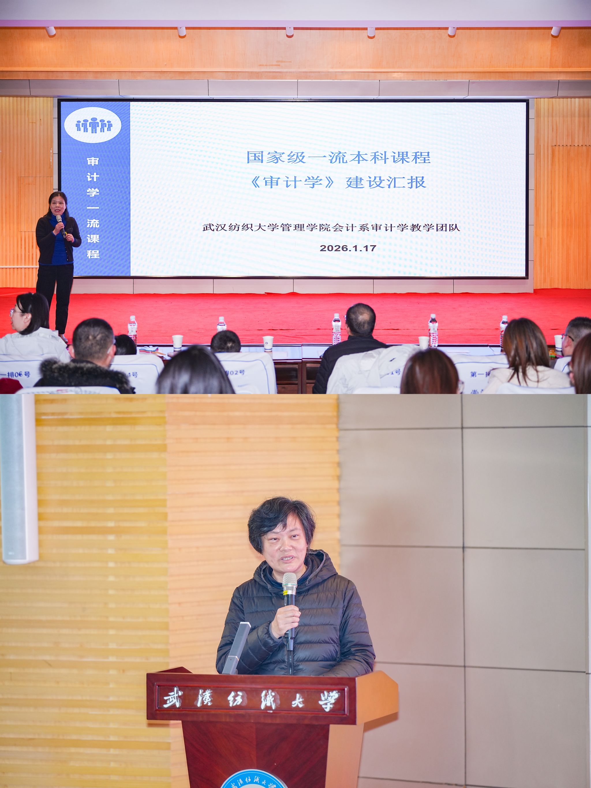 第二篇章“教坛笃行·展望新程”聚焦教育教学与竞赛育人,表达学院“以教为本、以学为先”的坚守创新。周萍老师作国家级一流本科课程《审计学》建设汇报,围绕课程目标体系、资源建设、教学改革与成效评价等关键环节分享经验,展现课程建设从“打磨一门课”到“育好一批人”的系统路径。万欣老师以“挑战杯国赛获奖的一点想法”为题,结合指导实践,分享选题凝练、团队协同与项目打磨的方法心得,生动诠释以赛促学、以赛促教、以赛促创的育人逻辑。