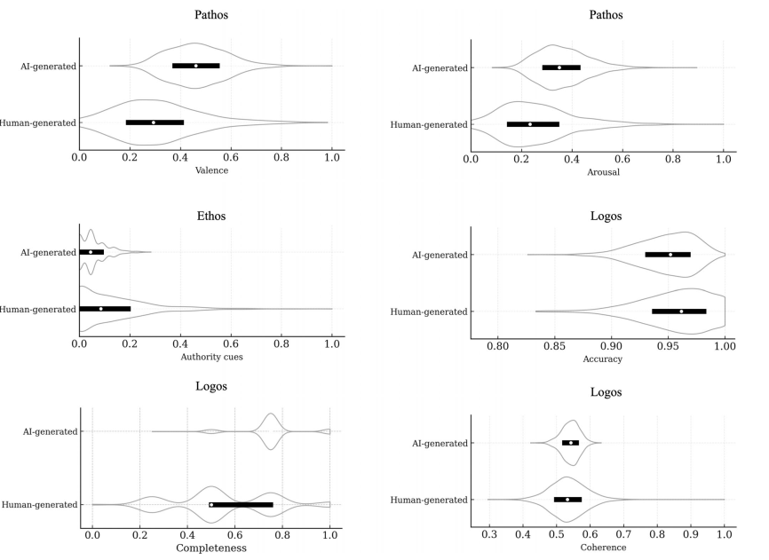 在数字化信息环境中,健康失真信息在社交媒体和在线平台中的传播已成为全球公共健康治理的重要挑战。虽然人工智能(AI)在生成辟谣文本方面展现出高效和低成本的潜力,但其生成的文本在说服力上是否优于人类专家,目前尚不明确。本研究旨在通过亚里士多德的修辞学三要素(情感诉求 Pathos、信誉诉求 Ethos、逻辑诉求 Logos),系统比较AI生成与人类生成的健康辟谣文本的说服效果及其机制。