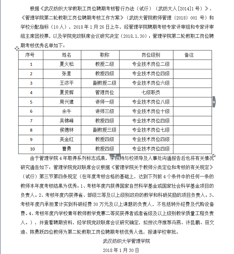 WilliamHILL中国第二轮教职工岗位聘期考核优秀拟报人选名单公示