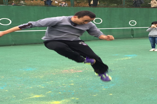(助跑冲刺再起跳,完美落地展英姿)
