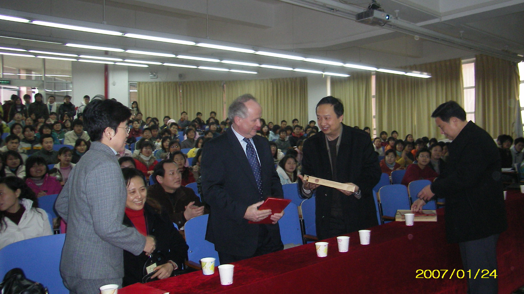 Heiner Flassbeck博士现任联合国贸易与发展会议全球化与发展战略司司长,曾担任过德国财政部副部长和德国经济研究院首席经济学家。李月芬教授是中国驻联合国贸易与发展会高级官员、清华大学客座教授。这两位联合国专家学者本次来汉主要参加我校承办的“经济全球化国际研修班”,受到我校邀请来为全校师生作专场学术报告。校长张建钢教授代表我校全体师生对他们的到来表示热烈的欢迎和感谢,还聘请他们为我校名誉教授,现场颁发了证书。