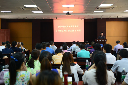 副校长潘慧明向2015级全体MBA新生介绍了学校悠久的办学历史、管理学科的发展史、学科布局、师资力量、科研水平、服务社会等内容。在学习方面,他希望MBA同学之间要珍惜缘份,多交流、多沟通,跟社会学、老师学、跟学长学;在商业理念方面,他殷切嘱托大家谨遵校训“崇真商美”的要求,树立符合伦理道德的商业文化理念。最后,他祝愿各位同学生活愉快!学业有成!事业有成!