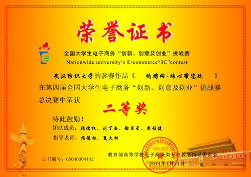 近日,第四届全国大学生电子商务“创新、创意及创业”挑战赛全国总决赛在武汉华中师范大学隆重举行。我校WilliamHILL中国夏火松教授和侯德林副教授指导的作品“约游网-贴心带你玩”从414支入围总决赛的队伍中脱颖而出,喜获全国总决赛二等奖。