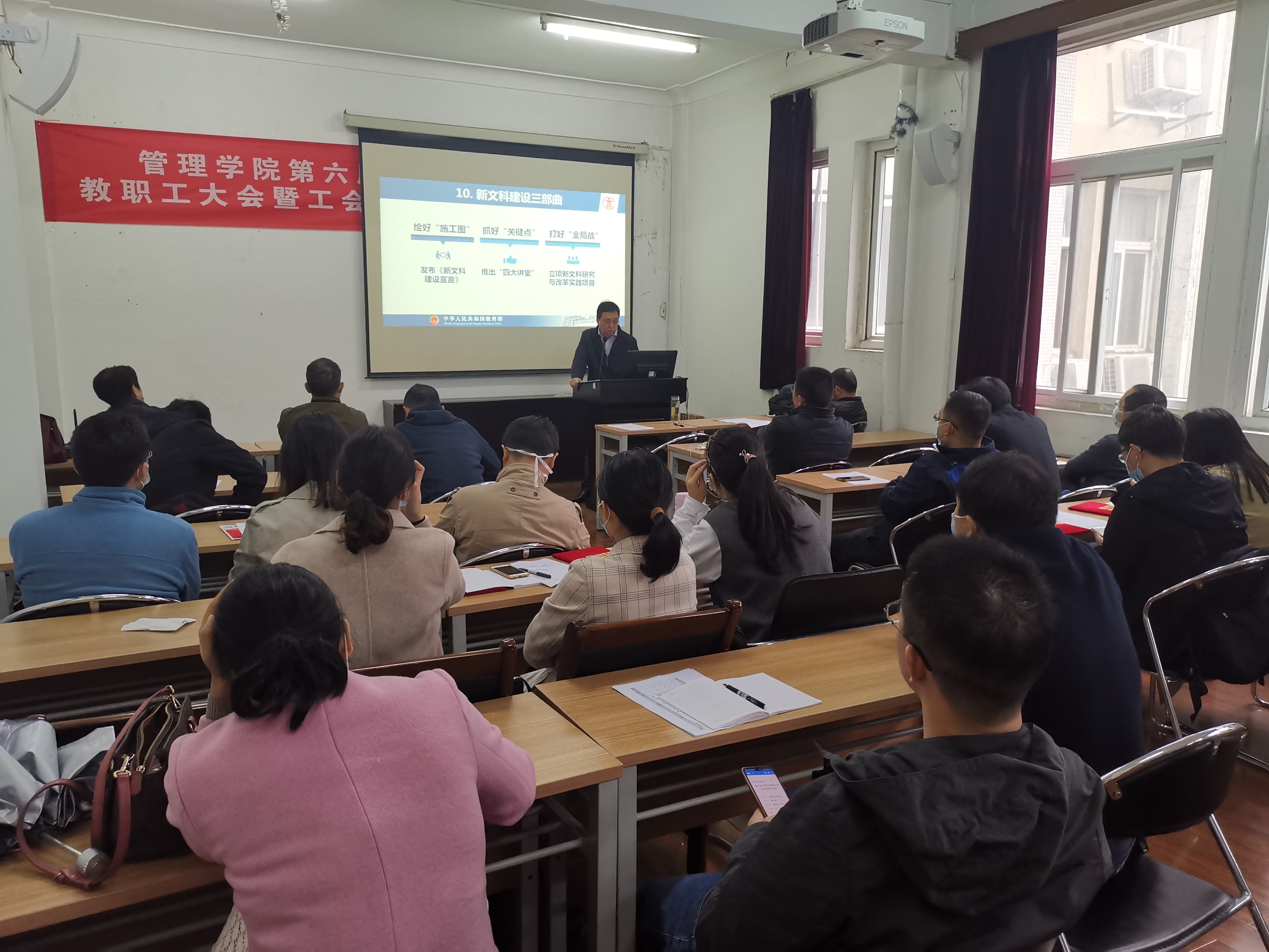 会上,院长王济平传达学习教育部高教司吴岩司长《积势蓄势谋势 识变应变求变——全面推进新文科建设》的主题报告,报告深入剖析了国际国内形势、机遇和挑战,深刻阐释了新文科建设的科学内涵、任务和使命,提出了深化新文科建设的重要举措。