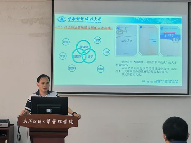 熊平副院长首先向学院领导及师生介绍了中南财经政法大学的历史,信息与安全工程学院研究生教育的发展现状,研究方向和招生规模等情况。