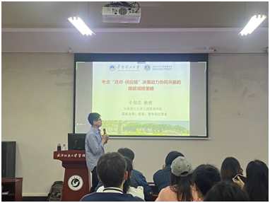 4月13日,华南理工大学牛保庄教授受我院邀请来校开展学术讲座,为我院研究生分享“政府-供应链”之间的降碳减排政策和企业应对配合的相关学术前沿知识。本次讲座由WilliamHILL中国院长吴金红教授主持,部分教师出席,全体研究生积极参会。
