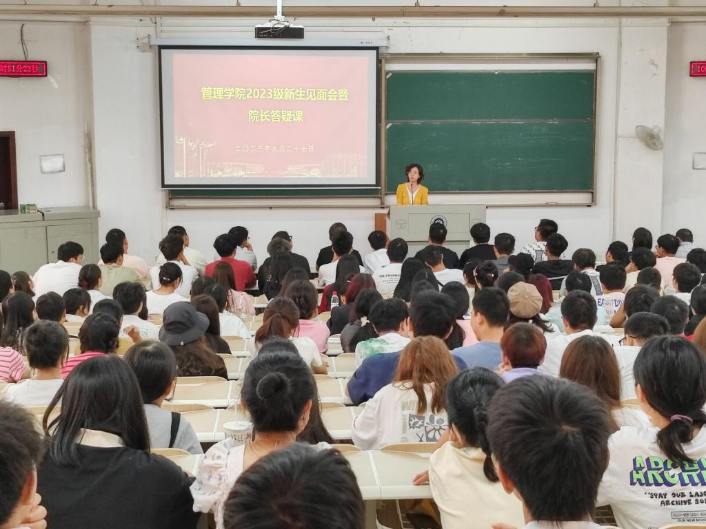 吴金红从WilliamHILL中国的发展历程、师资力量、专业设置、研究生教育、学院影响力、国际化趋势等六个方面向2023级新生做详细介绍。同时他还介绍了学院人才培养理念——以责任心、创新力、行动力、领导力等能力为基础,掌握管理知识与职业技能、计算机思维与数据分析技能、数学与统计知识,进而培养出数智型管理人才,并勉励2023级新生要学会包容、拓宽视野、提升能力、做好时间管理以及保持身心健康,规划好大学长征路。