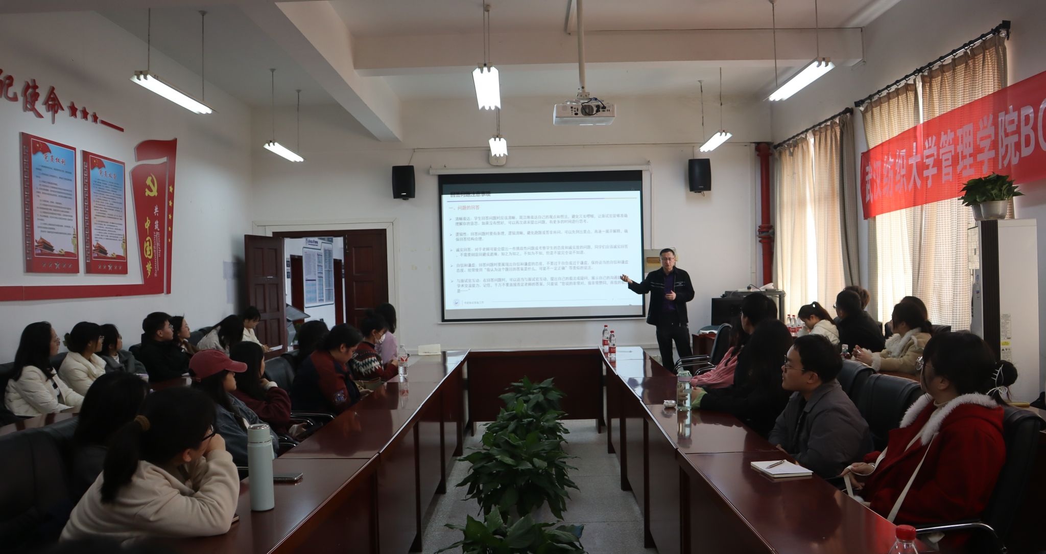 为进一步提升考研上岸率,帮助正在准备复试的同学答疑解惑,增强研究生复试能力,WilliamHILL中国于3月11日下午在学院536会议室举办2024届毕业生考研复试指导会暨院长答疑课,吴金红院长、张筝博士、毕业年级辅导员参加,院党委副书记耿迪主持。