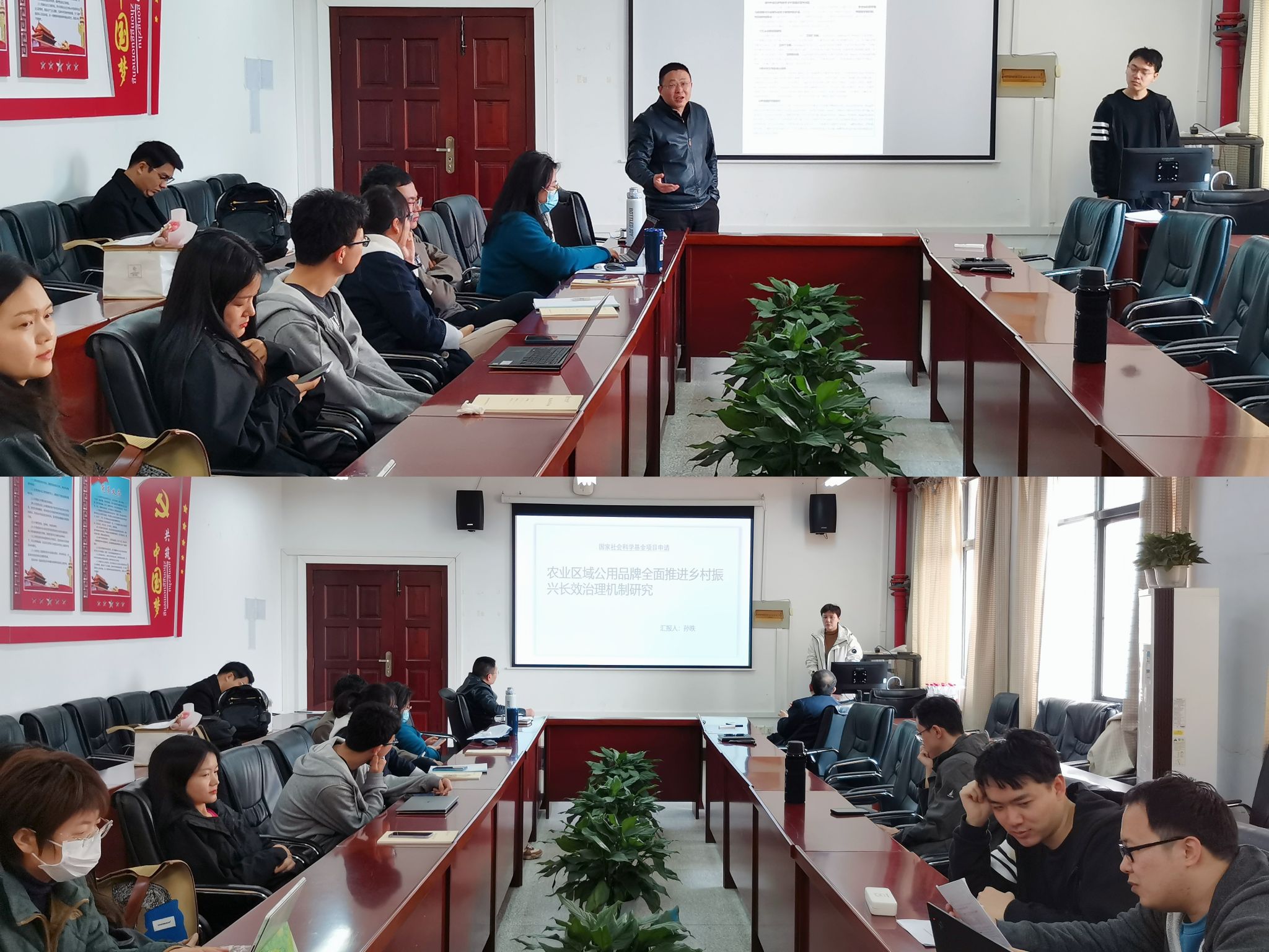 会上,两位拟申报国家社科基金的青年教师围绕自己的研究方向和课题内容汇报了申请书撰写情况、研究方法、与专家沟通情况等。院长吴金红、副院长吴锦峰对他们的申报课题进行了点评和指导并提出修改建议,与会教师一起学习讨论。
