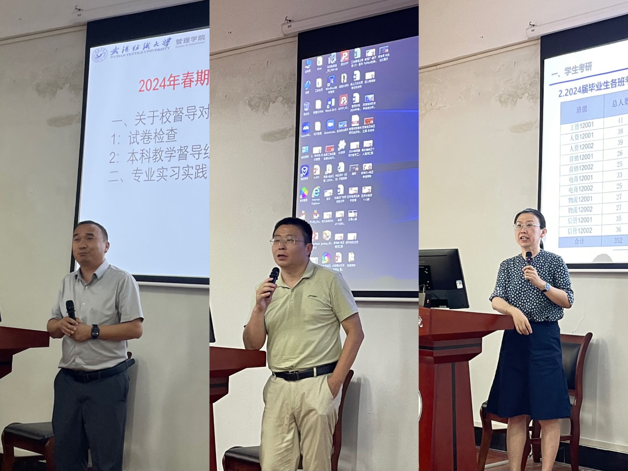 院长吴金红作总结发言,他表示,要继续加强学院党纪学习教育,各位老师要牢牢把握师德师风作为教师素质的第一标准,守住教书育人底线。并就学院近期教学检查、学生考研就业、研究生教育分类培养、招生宣传、暑期科研项目任务等重点工作进行了回顾与安排,针对教师如何提高教学手段、研究生学术学位与专业学位的分类发展提出了自己的建议与思考。