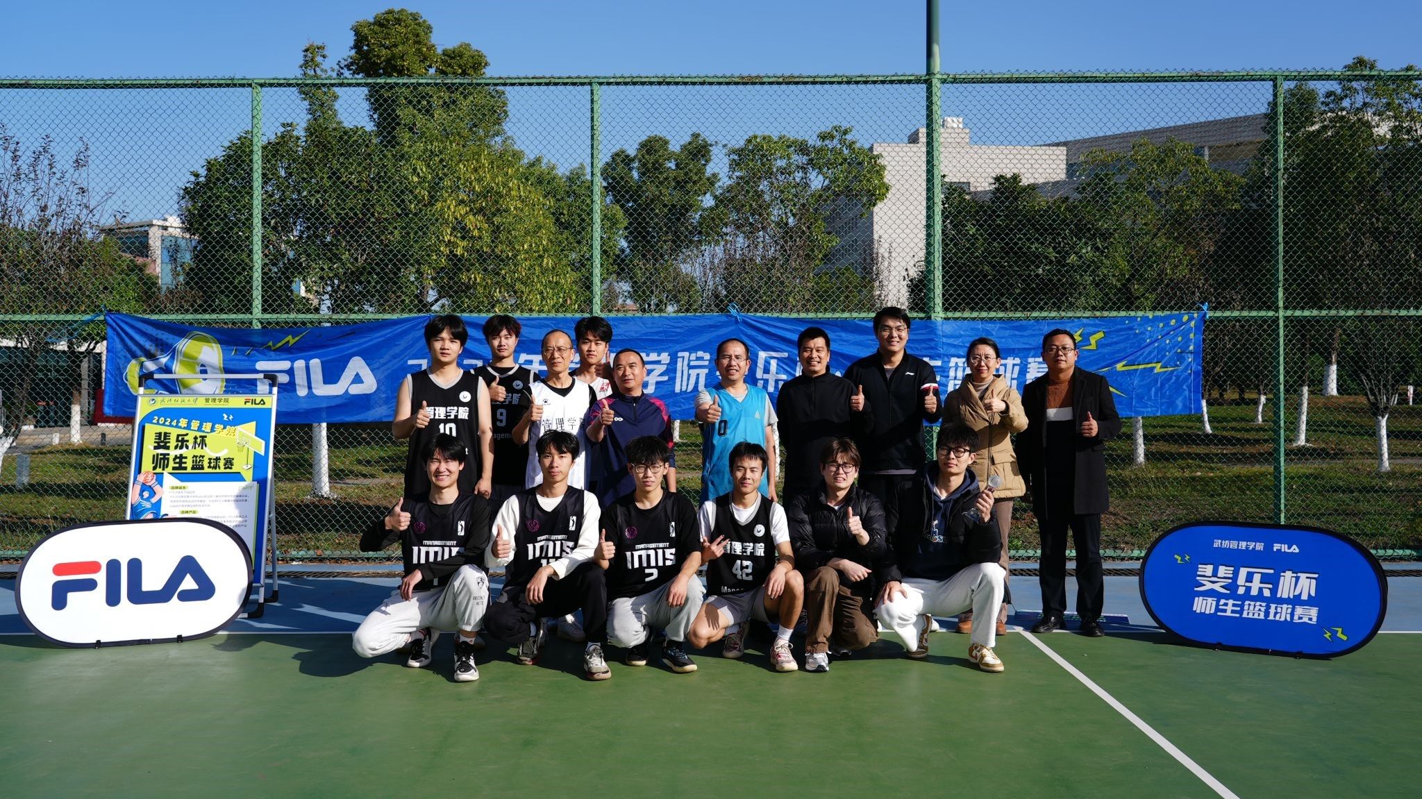 The autumn wind is gone, the winter cold is not deep. In order to further enhance the communication and understanding between teachers and students, guide teachers and students to carry forward the sportsmanship, provide a platform for teachers and students to exercise, and create a positive campus sports atmosphere, the School of Management and FILa jointly held the Fila Cup - Teacher and Student basketball match in November.