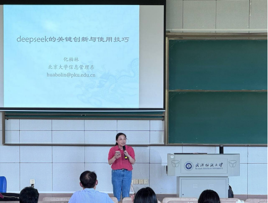 化柏林副教授主要从事文本挖掘、大数据情报分析研究,主持多项国家级基金课题,并兼任多个专业委员会委员及期刊审稿专家。化柏林副教授围绕“二进制的计算机如何实现当前智能水平”以及“如何利用DeepSeek等大模型提升工作效率”这两个核心问题展开深入讲解,详细阐述了DeepSeek的发展历程、关键技术与创新之处,分析了其在行业中的地位和社会影响。期间,化柏林副教授特别强调了DeepSeek在国际上的影响力,并通过具体数据和案例进行说明。