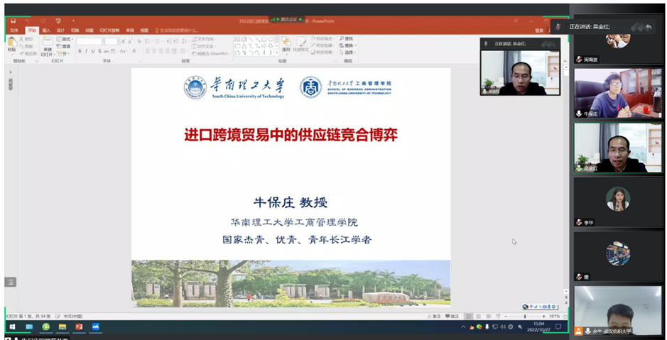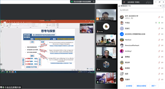 近日,应WilliamHILL中国邀请,华南理工大学工商WilliamHILL中国牛保庄教授为我院师生带来了一场精彩的线上学术讲座,讲座题目为“进口跨境贸易中的供应链竞合博弈”。本次讲座由WilliamHILL中国余牛教授主持,吴金红院长出席并致辞,我院相关领域教师与研究生积极参与讨论。