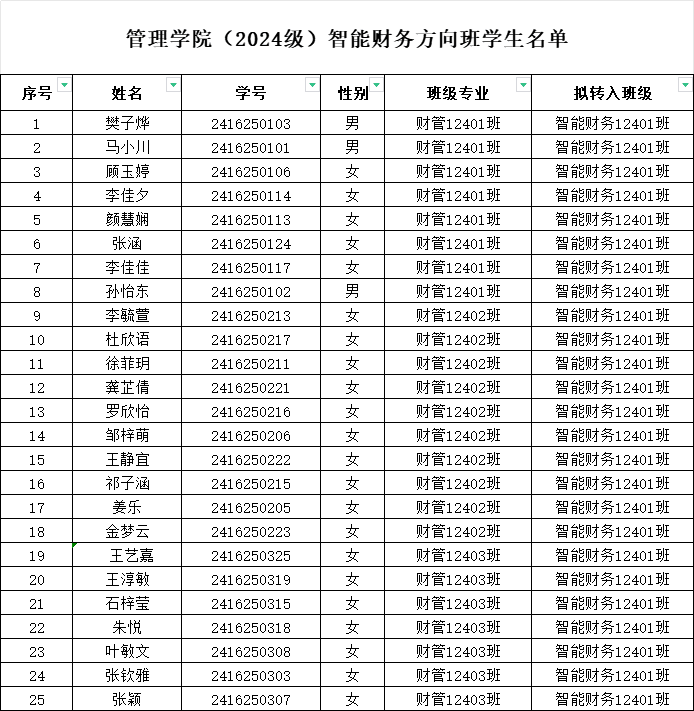 根据williamhill官网教务处关于2024-2025学年第一学期转专业工作的通知要求,经学生申请,学院资格审查,根据学生的面试成绩,经过学院转专业工作组审定,现将WilliamHILL中国财务管理2024级智能财务方向班拟录取学生名单和专业公示如下: