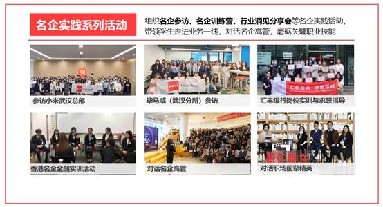 组织名企参访、名企训练营、行业洞见分享等名企实践活动,带领学生走进业务一线,对话名企高管,磨砺关键职业技能。